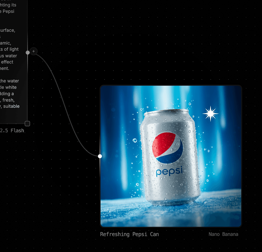 Use text nodes to write briefs, generate image prompts, or instruct video models on how to animate a scene.