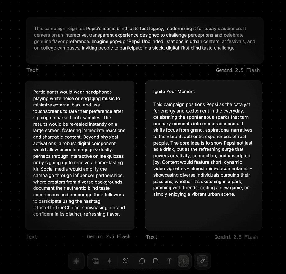 Jump into a Miro like canvas, and use more than 60+ AI Models